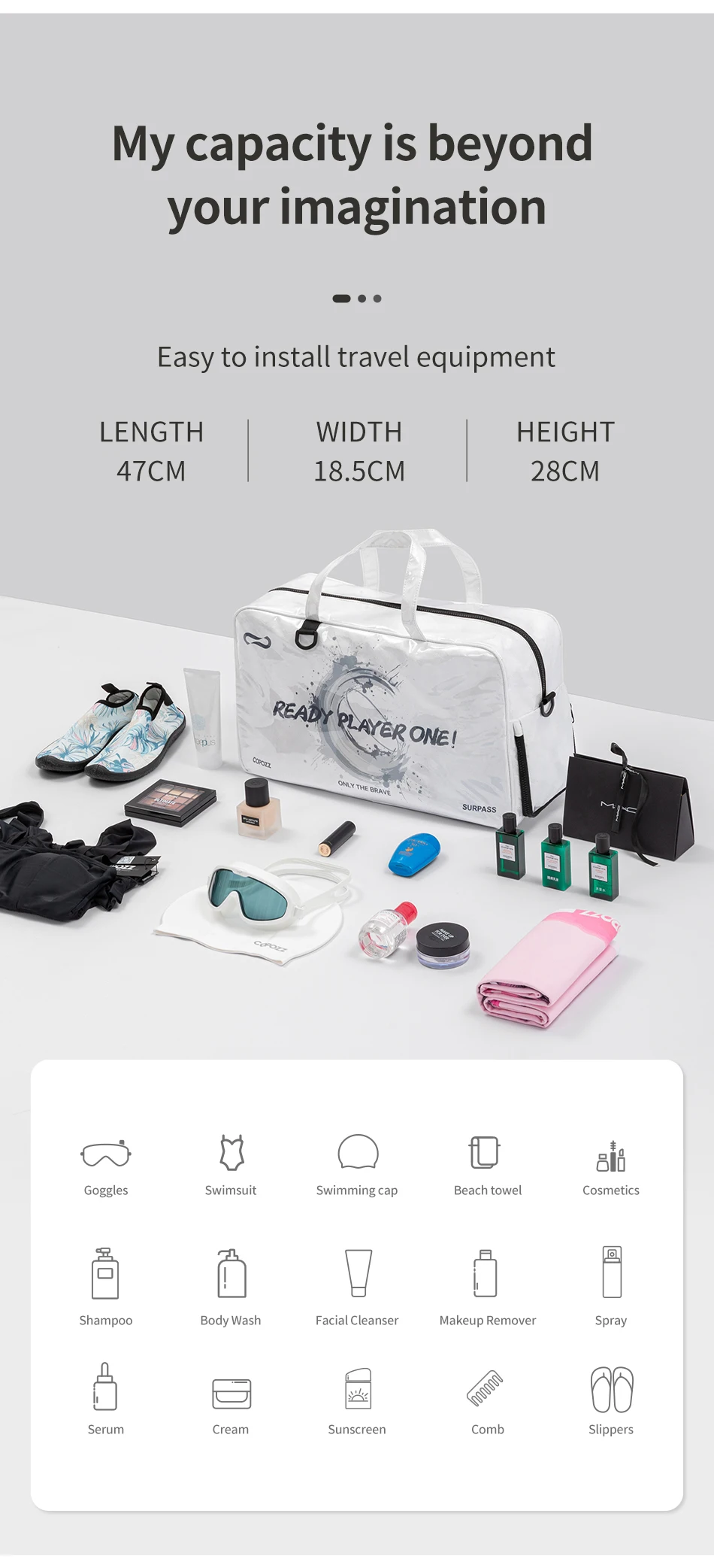 Why choose between form and function when you can have both? The COPOZZ 32600 boasts a modern design that fits perfectly at the gym, in the office, or by the ocean. Available in versatile shades to match any outfit, it’s the perfect blend of elegance and durability. Whether you’re heading to the yoga studio, the swimming pool, or your next big adventure, this bag keeps you ready for anything.